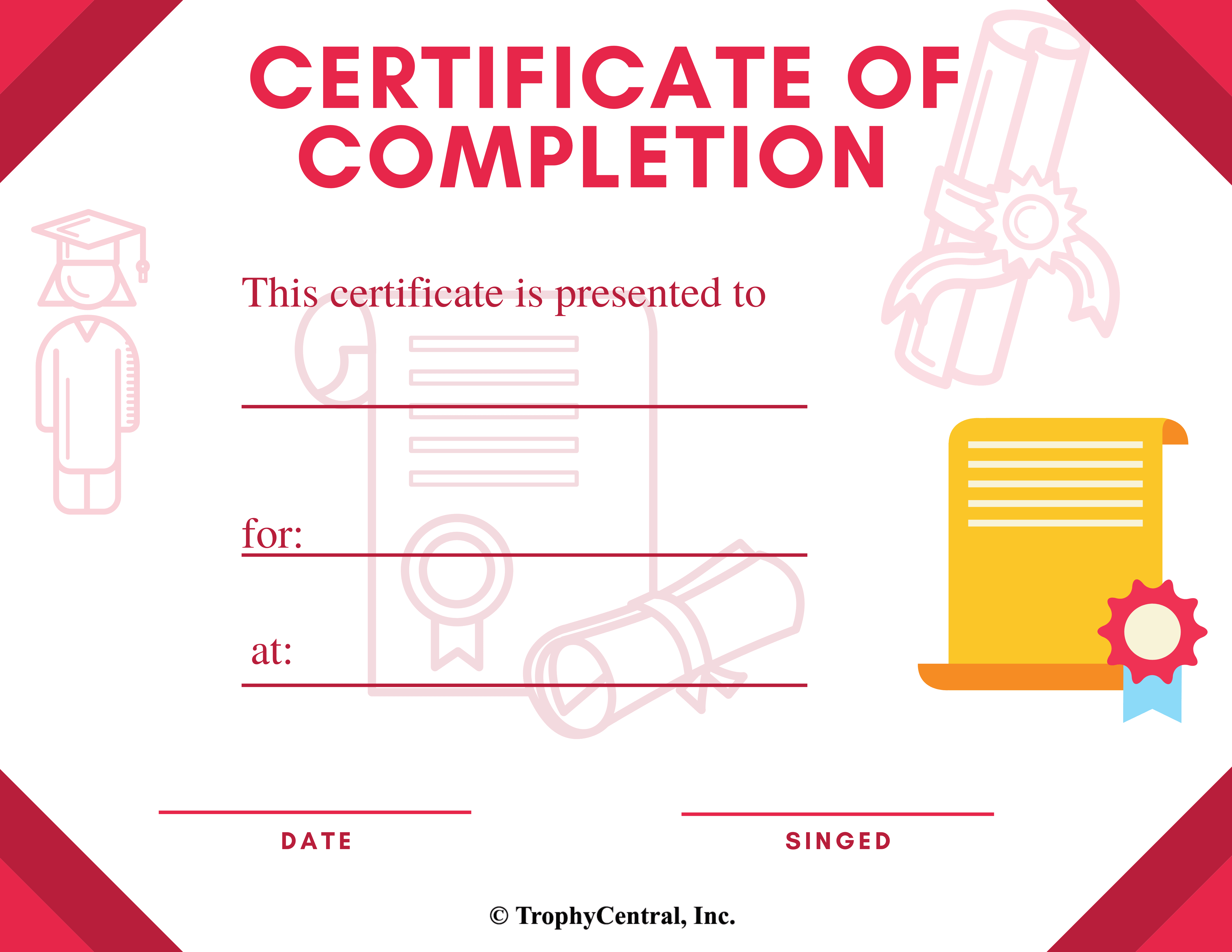This is a free Certificate of Completion template! Our free certificates were designed to be printable and use less ink to save you money. Simply press the View Now Button and then right click on the image and select Save File to download it. Award certificates measure 8 1/2" x 11". Outstanding for honoring achievement and success. SKU: certificate-of-completion-free-tc.