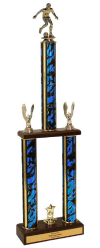 Two-Tier Championship Soccer Trophy with Wood Base - 26-28 Inches (Item #: qssoccerttw-2-tc)