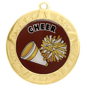 These Cheer / Spirit insert medals feature a 2 3/4 inch gold frame with a colorful 2 inch Epoxy dome subject decal. Each medal also includes a red, white and blue neck ribbon. Optional personalization on back. Wonderful for honoring accomplishments and milestones. Ships from: Marquette, Michigan. SKU: cheer-jigf-tc.