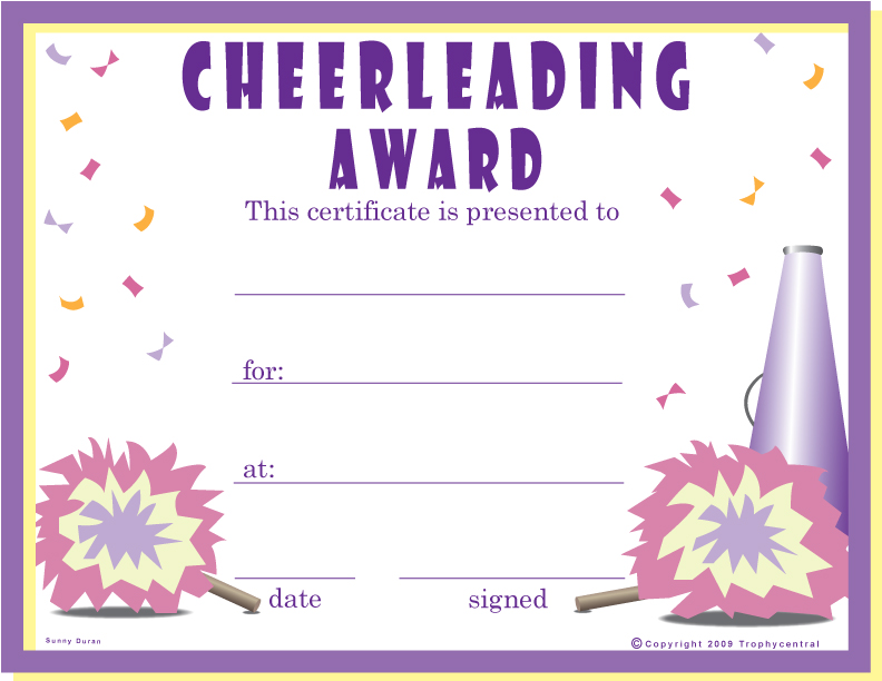 Cheerleading Award Certificate - Free Template (Item #: CHEERLEADINGFR-tc)