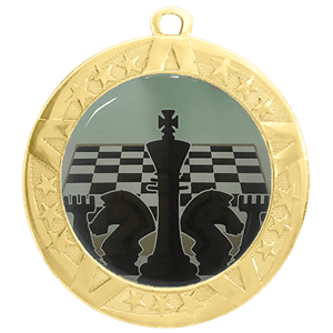 These Chess insert medals feature a 2 3/4 inch gold frame with a colorful 2 inch Epoxy dome subject decal. Each medal also includes a red, white and blue neck ribbon. Optional personalization on back. Outstanding for acknowledging chess excellence and achievement. Ships from: Marquette, Michigan. SKU: chess-jigf-tc.