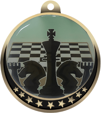 These colorful Chess insert medals were designed exclusively for Trophy Central! Each medal features an antique gold frame with a star design and 2" Epoxy dome decal insert for a spectacular look. Medals also include a red, white and blue neck ribbon. Medal frame measures 2 3/8". Optional personalization on back. Outstanding for acknowledging chess excellence and achievement. Ships from: Marquette, Michigan. SKU: chess-mc-tc.