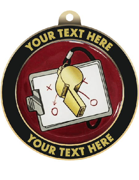 These colorful coach insert medals feature a unique customizable front rim. Each medal also features an antique gold frame with a star design and 2" subject insert for a spectacular look. Price includes a red, white and blue neck ribbon. Medal frame measures 2 3/4". Optional personalization on back. Wonderful for rewarding accomplishments and milestones. Ships from: Marquette, Michigan. SKU: coach-mc-pr-tc.