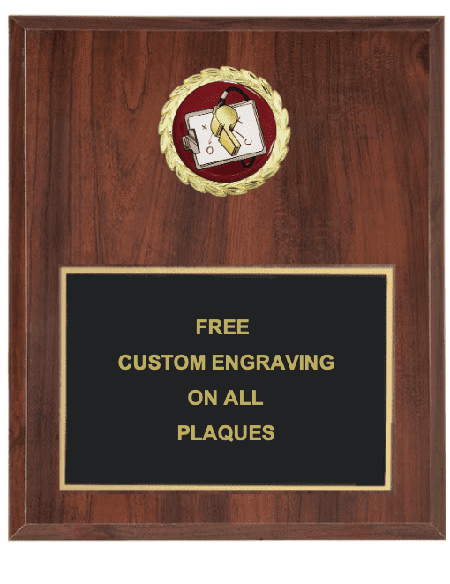 These Coach insert plaques feature a beautiful wood finish with a colorful 2 inch Epoxy dome insert. Select plaque size (7x9 or 8x10), finish (Cherry or Black) and orientation (Vertical or Horizontal) below. Price includes free text personalized engraving! Logo personalized engraving is optional. Ships from: Marquette, Michigan. SKU: coach-plaque-i-tc.