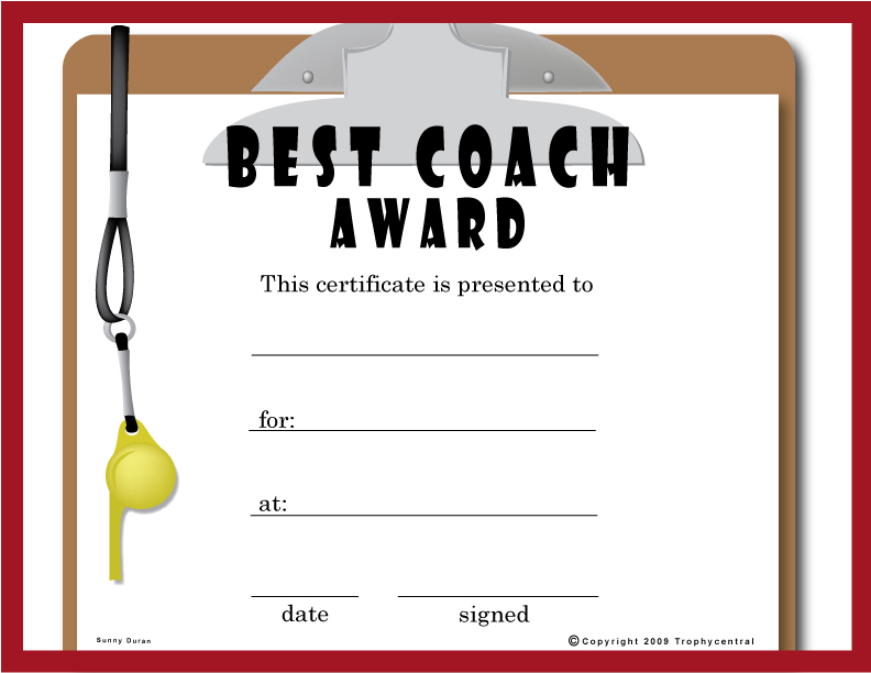 Best Coach Award Certificate - Free Template (Item #: COACHFR-tc)