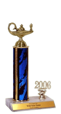 Choose from several sizes and column colors. Features a real marble base and choice of gold figure. Includes up to three lines of text engraving. Ships from: Marquette, Michigan. SKU: Year Trim Trophies - (1st, 2nd, or 3rd). Ships from: Marquette, Michigan. SKU: column-trophy-year-trim-tc.