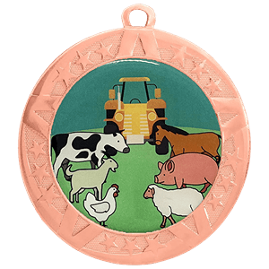 These county fair insert medals feature a 2 3/4 inch bronze frame with a colorful 2 inch Epoxy dome subject sticker. Each medal also includes a red, white and blue neck ribbon. Optional personalization on back. Wonderful for rewarding accomplishments and milestones. Ships from: Marquette, Michigan. SKU: county-fair-jibf-tc.