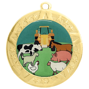 These county fair insert medals feature a 2 3/4 inch gold frame with a colorful 2 inch Epoxy dome subject sticker. Each medal also includes a red, white and blue neck ribbon. Optional personalization on back. Wonderful for celebrating accomplishments and milestones. Ships from: Marquette, Michigan. SKU: county-fair-jigf-tc.