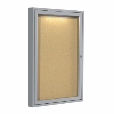 Ghent's Concealed Lighting Enclosed Bulletin Board is the perfect board to highlight important announcements or bulletins. The board's fluorescent lighting is hidden within the frame, illuminating the bulletin surface with no visible wires or bulbs. Centered in the middle of each door, the concealed bulbs cast light across the bulletin board surface, making sure all your announcements will be seen. As a bonus, the message center comes complete with a cord and plug and doesn't require an electrician to install. Ghent's 1-Door Enclosed Cork Bulletin Boards are made with self-healing cork. Holes made from repeated and frequent tacking will disappear, keeping the board looking brand new for years to come. With locking doors and keys, a hidden hanging system and shatter-proof acrylic door panels, you won't need to worry about vandalism or tampering when the message board is installed in a public area. Paired with our sleek Satin aluminum frame, the enclosed board will look great in any environment. Each board is shipped to you in Ghent's worry-free packaging, designed specifically for shipping enclosed boards. Ghent's Enclosed Cork Bulletin Board carries a 10-year warranty and is made in the USA. Recommended for indoor use only. Ships from: Lebanon, Ohio. SKU: cpa13624k-gt.