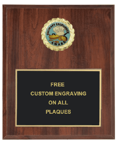 These Culinary insert plaques feature a beautiful wood finish with a colorful 2 inch Epoxy dome insert. Select plaque size (7x9 or 8x10), finish (Cherry or Black) and orientation (Vertical or Horizontal) below. Price includes free text personalized engraving! Logo personalized engraving is optional. Ships from: Marquette, Michigan. SKU: culinary-plaque-i-tc.