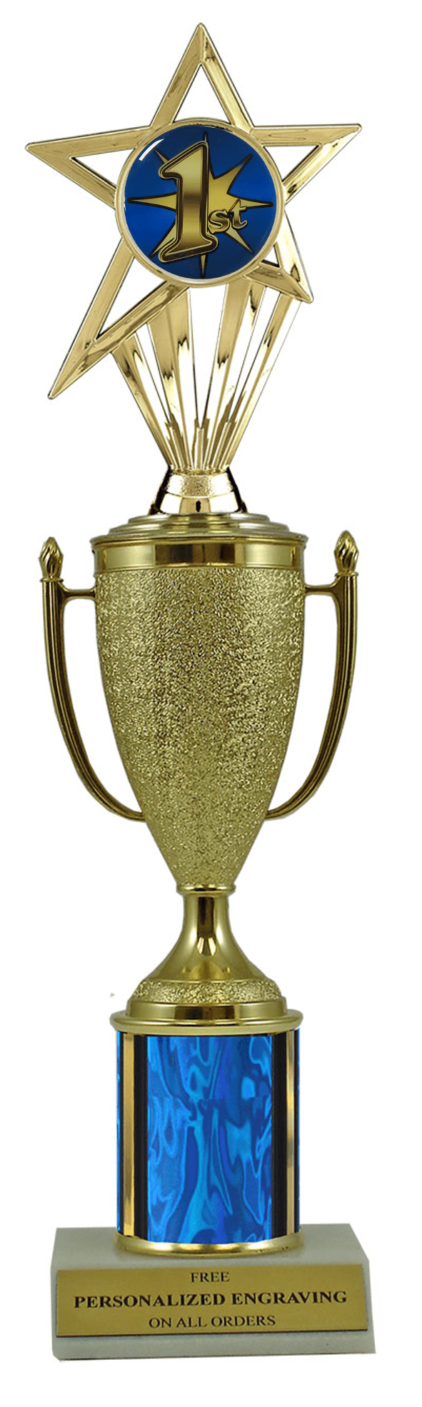 This unique award features a real marble slant-front base, choice of column color and a gold cup with a fabulous 1st place insert. It also includes up to 3 lines of personalized engraving for free. This trophy is a great choice when you want to recognize a special 1st achievement but don't want to spend a fortune. Select size and color below. A great choice for acknowledging excellence and victory. Ships from: Marquette, Michigan. SKU: cup-1st-scb-i-mqt.