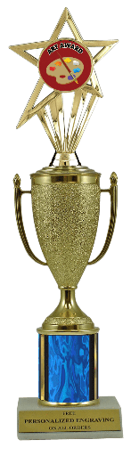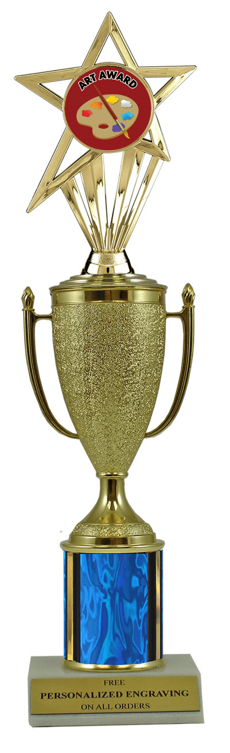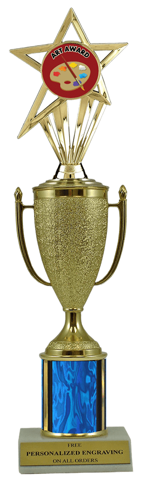 This unique award features a real marble slant-front base, choice of column color and a gold cup with a fabulous art insert. It also includes up to 3 lines of personalized engraving for free. This trophy is a great choice when you want to recognize a special art achievement but don't want to spend a fortune. Select size and color below. Ships from: Marquette, Michigan. SKU: cup-art-scb-i-mqt.