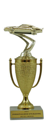 Recognize a special achievement with our classic cup trophy. Features a gold cup and Camaro figure with a high-quality slant-front marble base. Includes up to 3 lines of black text personalized engraving on a gold flexi-plate. Quantity discounts available. Use our Personalization Wizard to easily enter your personalized engraving. Ships from: Marquette, Michigan. SKU: cup-camaro-p-qtt.