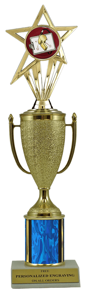 This unique award features a real marble slant-front base, choice of column color and a gold cup with a fabulous coach insert. It also includes up to 3 lines of personalized engraving for free. This trophy is a great choice when you want to recognize a special coach achievement but don't want to spend a fortune. Select size and color below. Ships from: Marquette, Michigan. SKU: cup-coach-scb-i-mqt.