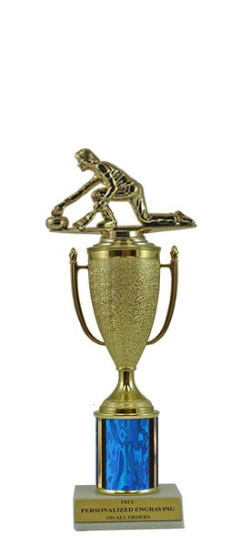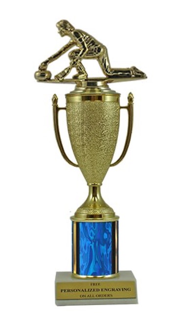 This unique design combines a gold cup with a curling figure. Award features a real marble slant-front base and choice of column color. It also includes up to 3 lines of personalized engraving for free. This trophy is a great choice when you want to recognize a special achievement but don't want to spend a fortune. Select size and color below. Ships from: Marquette, Michigan. SKU: cup-curl-scb-tc.