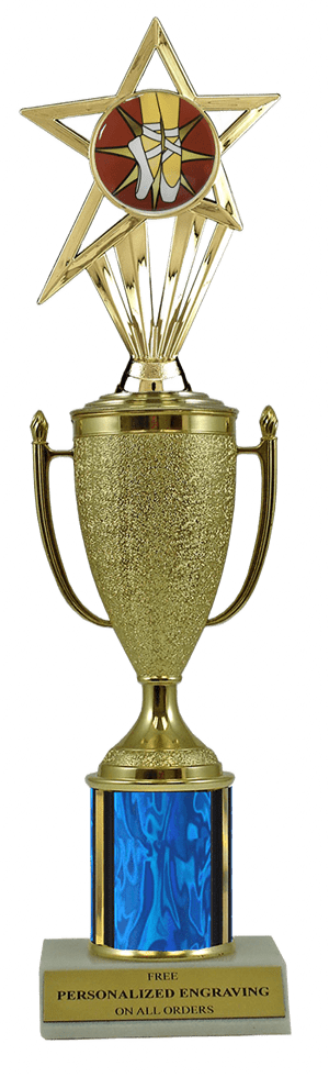 This unique award features a real marble slant-front base, choice of column color and a gold cup with a fabulous dance insert. It also includes up to 3 lines of personalized engraving for free. This trophy is a great choice when you want to recognize a special dance achievement but don't want to spend a fortune. Select size and color below. Ships from: Marquette, Michigan. SKU: cup-dance-scb-i-mqt.