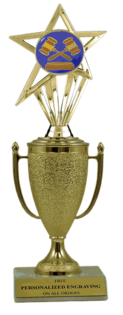 Recognize a special achievement with our fabulous cup & insert trophy. Features a gold cup and debate insert with a high-quality slant-front marble base. Includes up to 3 lines of black text personalized engraving on a gold flexi-plate. Quantity discounts available. Use our Personalization Wizard to easily enter your personalized engraving. Outstanding for celebrating debate excellence and achievement. Ships from: Marquette, Michigan. SKU: cup-debate-in-tc.
