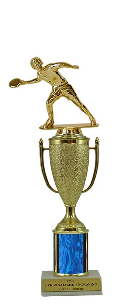 This unique design combines a gold cup with a disc golf figure. Award features a real marble slant-front base and choice of column color. It also includes up to 3 lines of personalized engraving for free. This trophy is a great choice when you want to recognize a special achievement but don't want to spend a fortune. Select size and color below. Great for golf season events and tournament recognition. Ships from: Marquette, Michigan. SKU: cup-disc-scb-tc.
