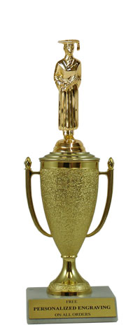 Recognize a special achievement with our classic cup trophy. Features a gold cup and graduate figure with a high-quality slant-front marble base. Includes up to 3 lines of black text personalized engraving on a gold flexi-plate. Quantity discounts available. Use our Personalization Wizard to easily enter your personalized engraving. Magnificent for honoring excellence and victory. Ships from: Marquette, Michigan. SKU: cup-grad-p-tc.