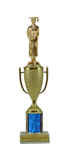 This unique design combines a gold cup with a graduate figure. Award features a real marble slant-front base and choice of column color. It also includes up to 3 lines of personalized engraving for free. This trophy is a great choice when you want to recognize a special achievement but don't want to spend a fortune. Select size and color below. Magnificent for honoring excellence and victory. Ships from: Marquette, Michigan. SKU: cup-grad-scb-tc.