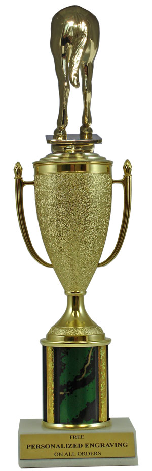 Single Column Cup Trophy - Gag Horses-Rear (Item #: cup-horse-scb-tc)