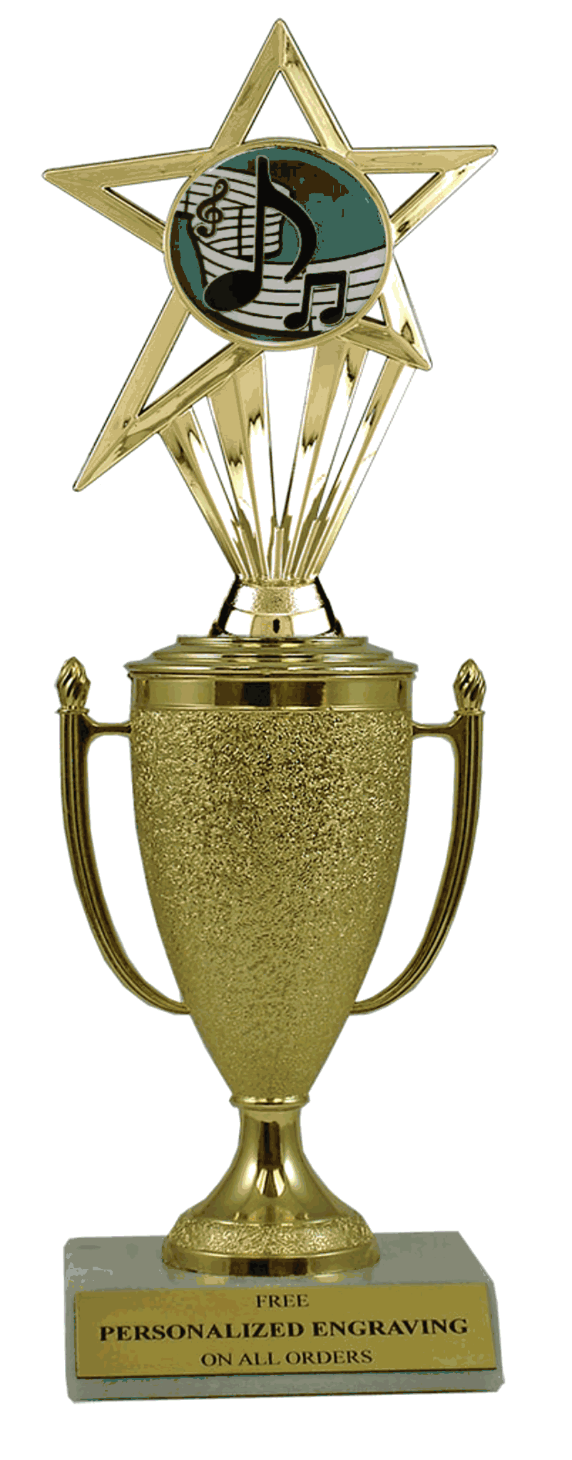 Recognize a special achievement with our fabulous cup & insert trophy. Features a gold cup and music insert with a high-quality slant-front marble base. Includes up to 3 lines of black text personalized engraving on a gold flexi-plate. Quantity discounts available. Use our Personalization Wizard to easily enter your personalized engraving. Outstanding for recognizing music skills and dedication. Ships from: Marquette, Michigan. SKU: cup-music-in-tc.