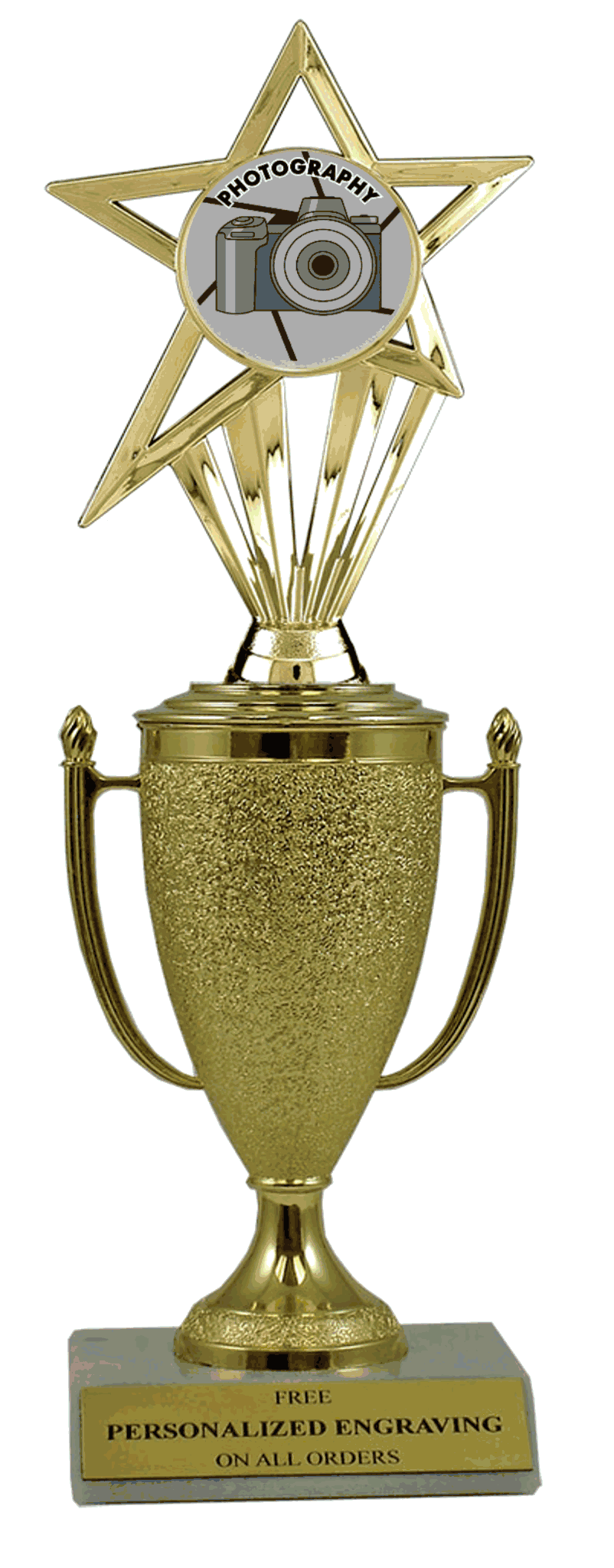 Recognize a special achievement with our fabulous cup & insert trophy. Features a gold cup and photography insert with a high-quality slant-front marble base. Includes up to 3 lines of black text personalized engraving on a gold flexi-plate. Quantity discounts available. Use our Personalization Wizard to easily enter your personalized engraving. Outstanding for recognizing photography skills and dedication. Ships from: Marquette, Michigan. SKU: cup-photography-in-tc.