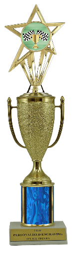 This unique award features a real marble slant-front base, choice of column color and a gold cup with a fabulous racing insert. It also includes up to 3 lines of personalized engraving for free. This trophy is a great choice when you want to recognize a special racing achievement but don't want to spend a fortune. Select size and color below. Magnificent for recognizing excellence and victory. Ships from: Marquette, Michigan. SKU: cup-racing-scb-i-mqt.