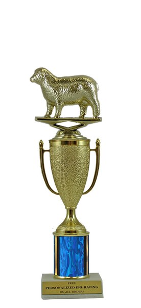 This unique design combines a gold cup with a sheep figure. Award features a real marble slant-front base and choice of column color. It also includes up to 3 lines of personalized engraving for free. This trophy is a great choice when you want to recognize a special achievement but don't want to spend a fortune. Select size and color below. A wonderful choice for rewarding excellence and victory. Ships from: Marquette, Michigan. SKU: cup-sheep-scb-qtt.