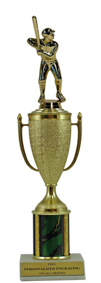 This unique design combines a gold cup with a softball figure. Award features a real marble slant-front base and choice of column color. It also includes up to 3 lines of personalized engraving for free. This trophy is a great choice when you want to recognize a special achievement but don't want to spend a fortune. Select size and color below. A wonderful choice for rewarding excellence and victory. Ships from: Marquette, Michigan. SKU: cup-soft-scb-tc.