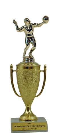 Recognize a special achievement with our classic cup trophy. Features a gold cup and volleyball figure with a high-quality slant-front marble base. Includes up to 3 lines of black text personalized engraving on a gold flexi-plate. Quantity discounts available. Use our Personalization Wizard to easily enter your personalized engraving. Outstanding for celebrating volleyball excellence and achievement. Ships from: Marquette, Michigan. SKU: cup-volly-p-tc.