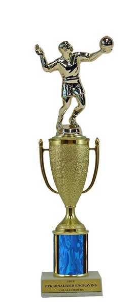 This unique design combines a gold cup with a volleyball figure. Award features a real marble slant-front base and choice of column color. It also includes up to 3 lines of personalized engraving for free. This trophy is a great choice when you want to recognize a special achievement but don't want to spend a fortune. Select size and color below. Outstanding for acknowledging volleyball excellence and achievement. Ships from: Marquette, Michigan. SKU: cup-volly-scb-tc.