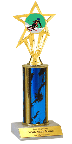Customers love the traditional design of this award which is appropriate for recognition and events of all sorts. Our Elite Series includes a real marble base with a slant-front and up to 3 lines of free personalized engraving. Choice of 4 sizes and many column colors. Topper: Downhill Skiing Insert. Ships from: Marquette, Michigan. SKU: d-skiing-single-i-tc.
