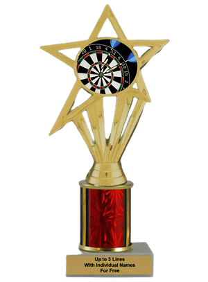 Our economy insert trophy features a real marble base, a 2-inch insert and up to 3 lines of free personalized engraving. Choice of 4 sizes and many column colors. Up to three text personalized engraving free, including individual names! Topper: Darts Insert. Ships from: Marquette, Michigan. SKU: darts-e-single-i-tc.
