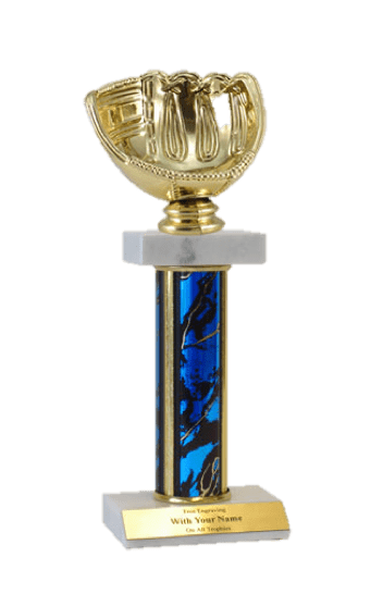 The timeless style makes this deluxe trophy perfect for virtually any occasion. Platform: Double white marble (one for column, one for base); Sizes / Colors: Multiple; personalization Free!; Event / Topper: Baseball Glove; Perfect for baseball season tournaments and championship games. Ships from: Marquette, Michigan. SKU: qsbasebgldm-qt.