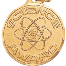 These 1 1/4 inch economy science fair medals feature a choice of a neck ribbon or military style drape ribbon and optional personalized engraving on back of medal. Choose finish below. Outstanding for recognizing science excellence and achievement. Ships from: Mount Vernon, New York. SKU: e9901-cm.