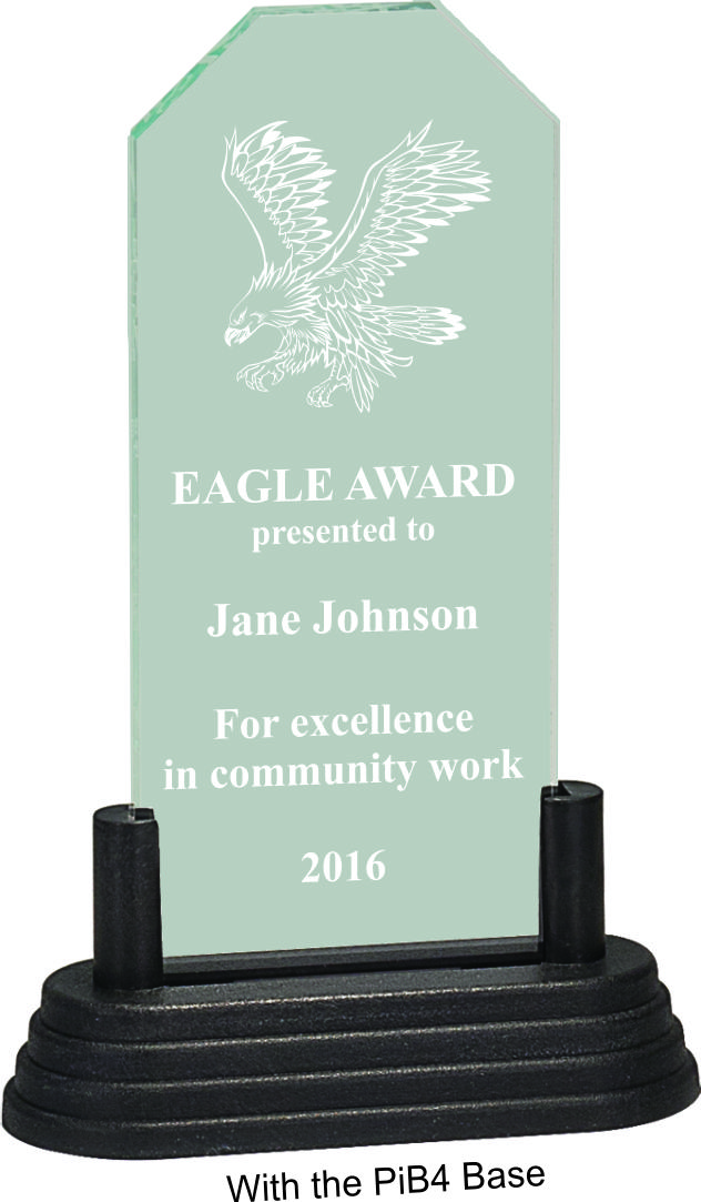This Jade Acrylic Award features an etched eagle logo and a weighted black base. Measures 7" tall. Price includes personalization. A great choice for acknowledging excellence and victory. Present to recognize vision, guidance, and leadership excellence. Celebrates vision, inspiration, and guiding teams to success. Ships from: Marquette, Michigan. SKU: eagleblackacrylic-tc.