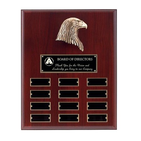 Antique bronze hand-case eagle on mahogany finished plaque. Includes brass main plate and 12 brass nameplates. Measures 15" x 12". Distinguished piece to elegantly celebrate vision, guidance, and leadership excellence. Celebrates vision, inspiration, and guiding teams to success. Ships from: Chicago, Illinois. SKU: p1148-rs.