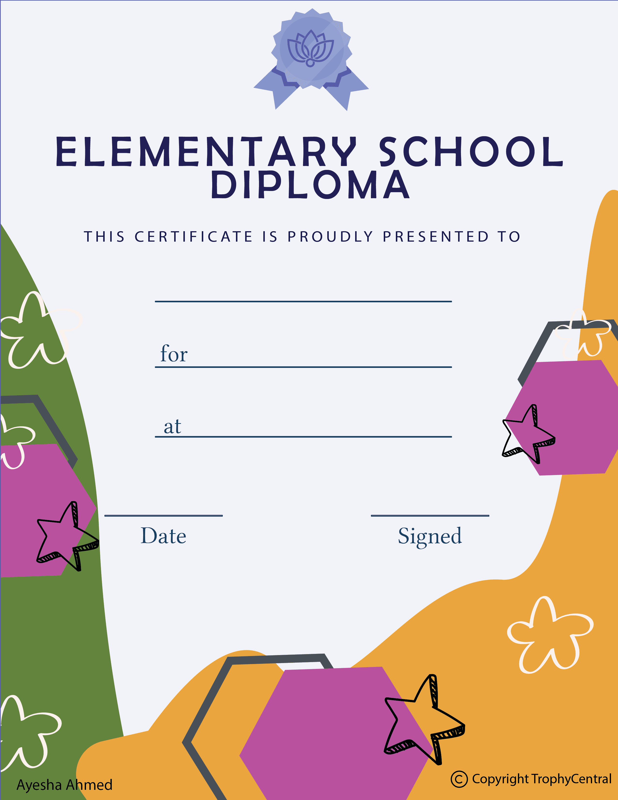 This is a free Elementary School Diploma template is a fun way to help celebrate your child's graduation! Our free award certificates were designed to be printable and use less ink to save you money. Simply press the View Now Button and then right click on the image and select Save File to download it. Award certificates measure 8 1/2" x 11". Outstanding for rewarding achievement and success. SKU: elementary-diploma-tc.