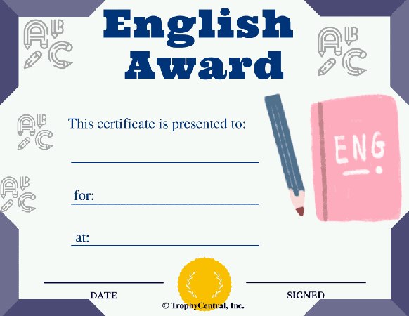 English Award Certificate - Free Template (Item #: English-Award-Free-tc)