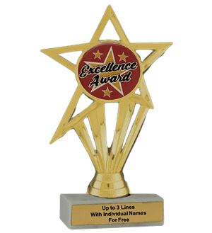 Our economy insert trophy features a real white marble base with a gold insert holder and 2" Excellence insert. Measures approximately 6 7/8" - 7 1/8" tall. Add up to three lines of text personalized engraving for free, including individual names! Magnificent for recognizing excellence and victory. Ships from: Marquette, Michigan. SKU: excellence-e-part-i-tc.