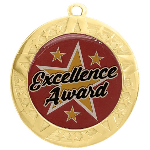 2 3/4" T-Series Medal with Gold Frame: Excellence (Item #: excellence-jigf-tc)
