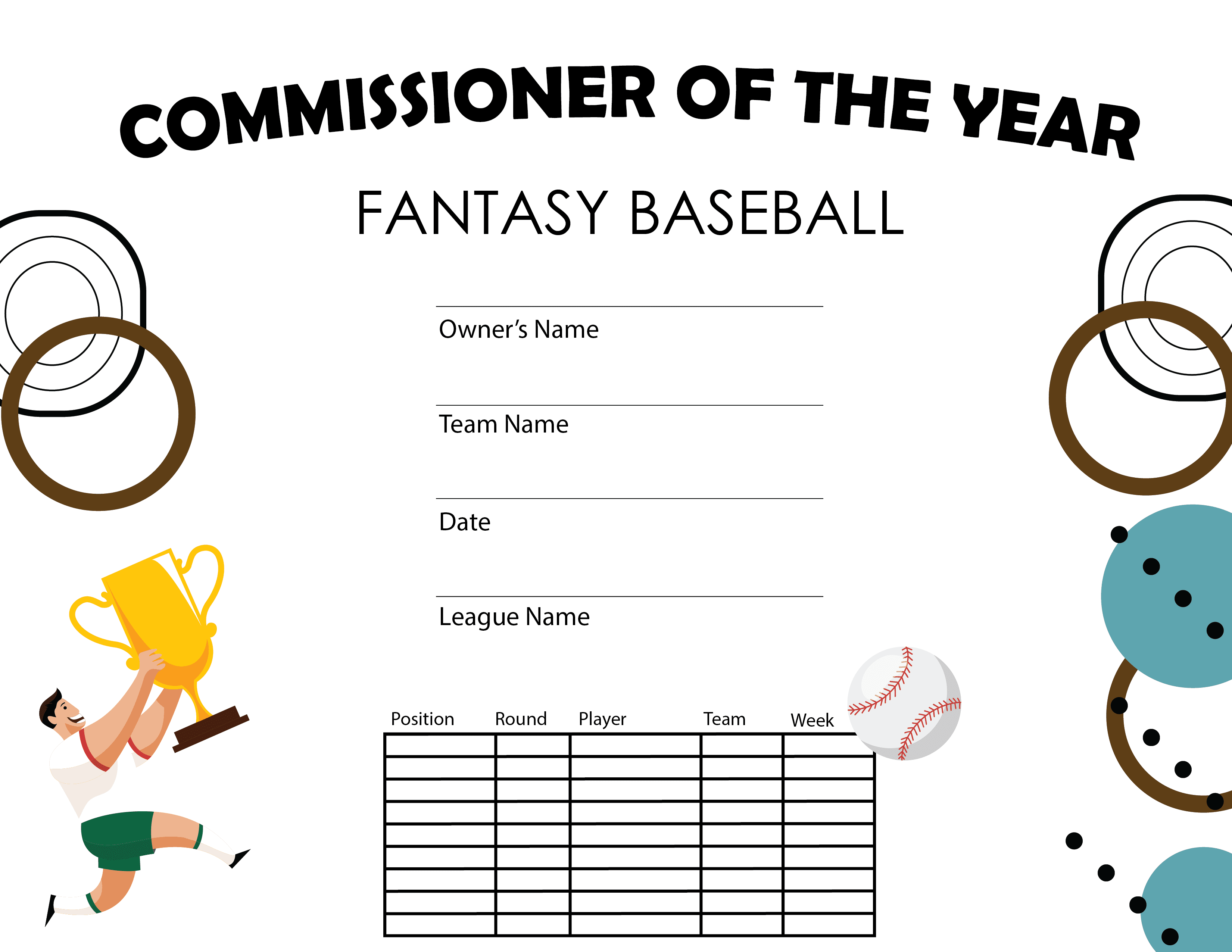 Fantasy Baseball Commissioner of the Year Certificate - Free Template (Item #: fbb-commish-tc)