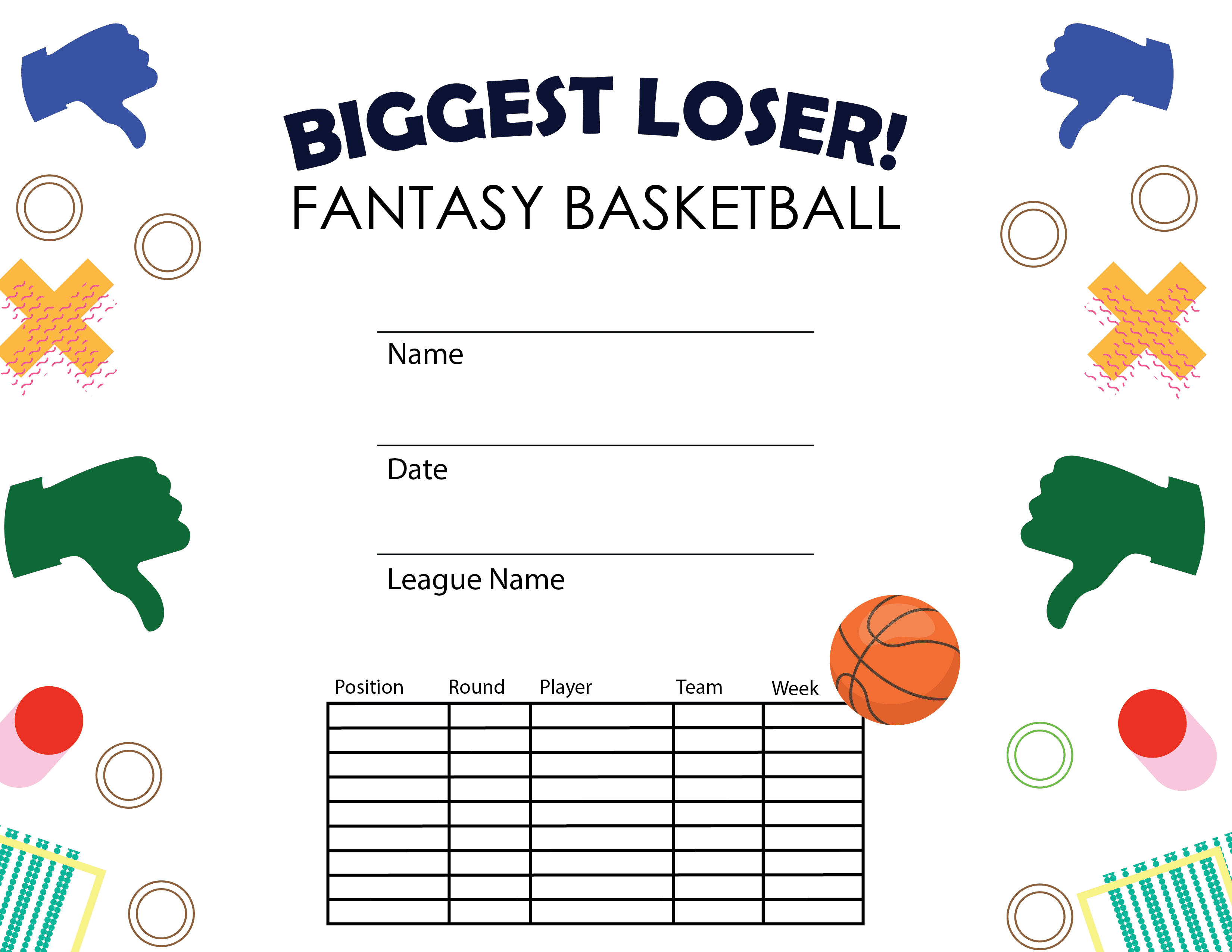 Fantasy Basketball Biggest Loser Certificate - Free Template (Item #: fbs-loser-tc)