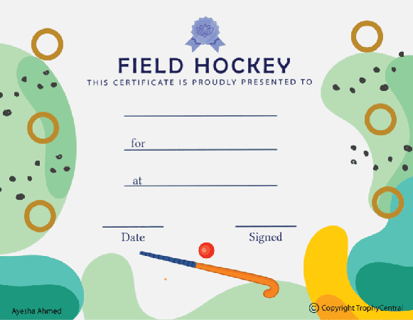 This is a free Field Hockey certificate template! Our free certificates were designed to be printable and use less ink to save you money. Simply press the View Now Button and then right click on the image and select Save File to download it. Award certificates measure 8 1/2" x 11". Outstanding for recognizing achievement and success. SKU: field-hockey-tc.