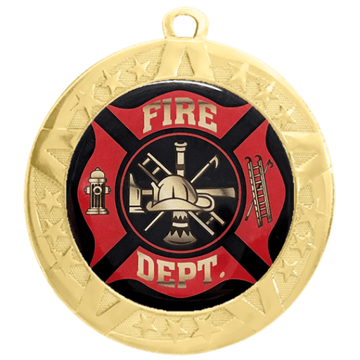 Epoxy Dome Gold Frame Insert Medal: Fire Department (Item #: fire-dept-jigf-tc)