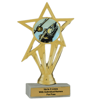 Our economy insert trophy features a real white marble base with a gold insert holder and 2" Fishing insert. Measures approximately 6 7/8" - 7 1/8" tall. Add up to three lines of text personalized engraving for free, including individual names! Outstanding for acknowledging fishing skills and dedication. Ships from: Marquette, Michigan. SKU: fishing-e-part-i-tc.