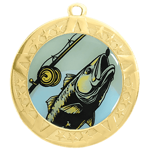 Fishing Award Medal - Gold Frame, 2 3/4" (Item #: fishing-jigf-tc)