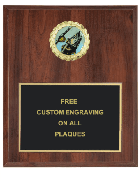These Fishing insert plaques feature a beautiful wood finish with a colorful 2 inch Epoxy dome insert. Select plaque size (7x9 or 8x10), finish (Cherry or Black) and orientation (Vertical or Horizontal) below. Price includes free text personalized engraving! Logo personalized engraving is optional. Outstanding for honoring fishing skills and dedication. Ships from: Marquette, Michigan. SKU: fishing-plaque-i-tc.