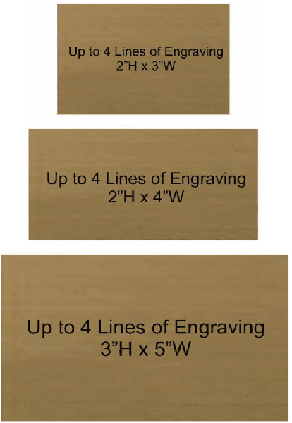 Flexi-Brass is a thin, flexible material similar to Mylar, with sticky, peel-away backing. Includes 4-6 lines of engraving and 25-40 characters/spaces per line depending on size. Select from 2", 3" or 4" sizes. Custom sizes are also available, email customer service for pricing and details. SKU: FLBST23-tc.